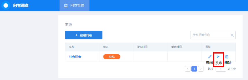 这里可以对问卷调查进行 “编辑”“发布”“删除”。点击“发布”