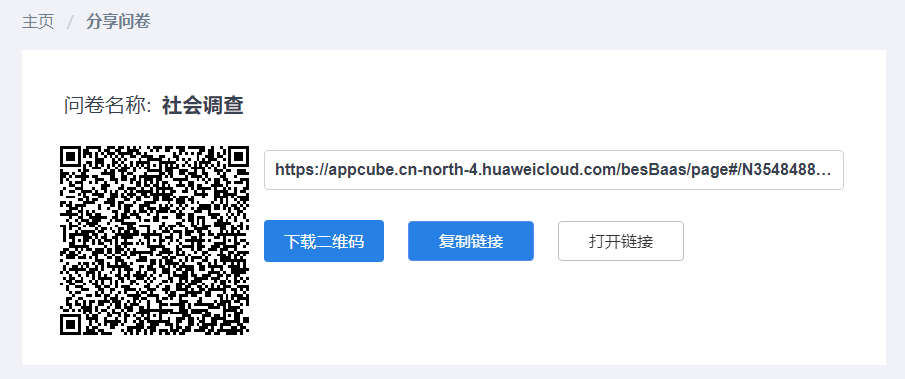 点击“分享”,“分享”页面提供了问卷二维码和问卷链接。