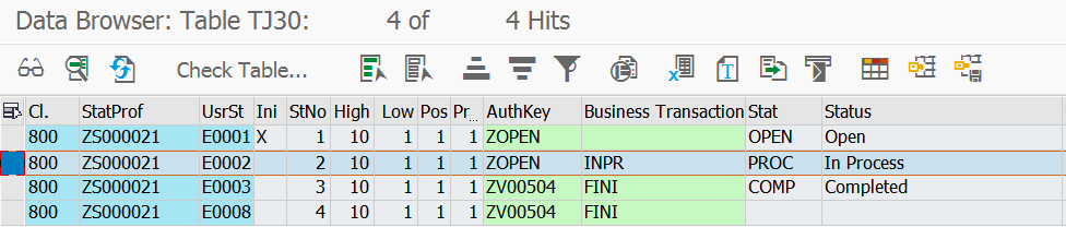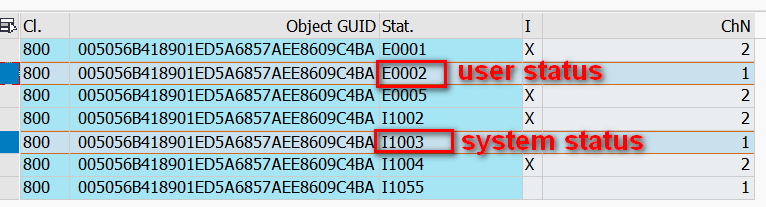 以上图的INPR为例,其User Status code为PROC - 处理中。到TJ30查表可得其User Status为E0002。