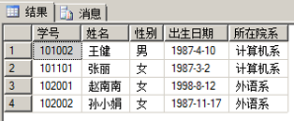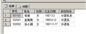 单击工具栏中的“执行”按钮。如图所示,查询到了所有学生的基本信息,结果如下图所示