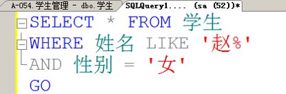 select * from 学生 where 姓名 like '赵%' AND性别='女'