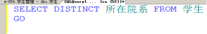 - 查询学生所在的院系名字,并要求显示的院系名称不重复。