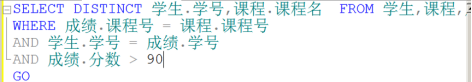 - 查询分数在90分以上的成绩信息
