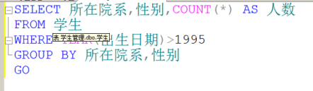 WHERE YEAR(出生日期)>1995 GROUP BY 所在院系,性别 Go