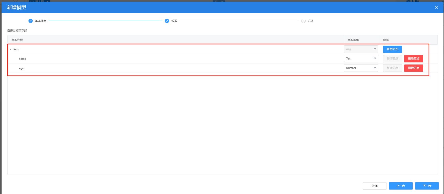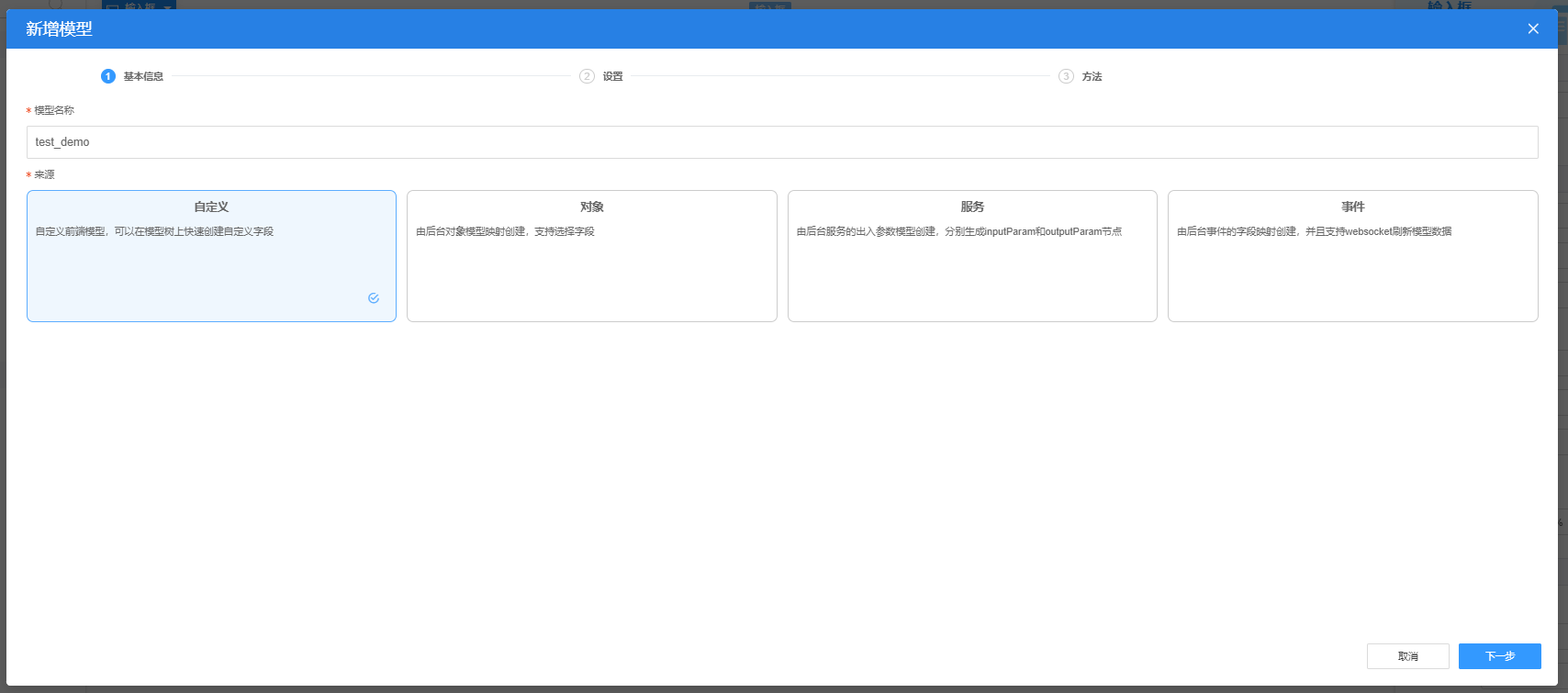 | 自定义 | 由用户自定义的前端模型,可以在模型树上快速创建自定义字段 |