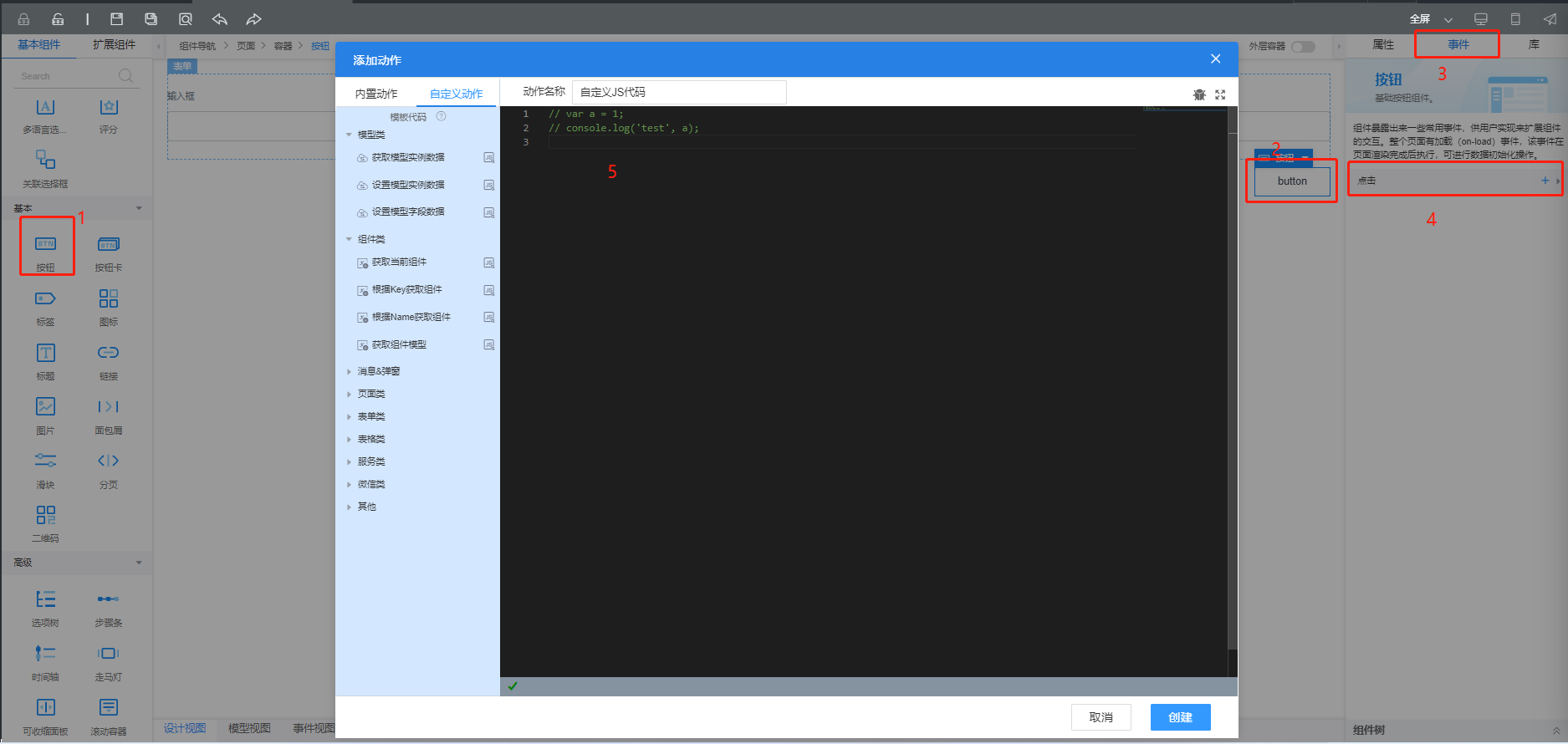 | 事件 | 由后台事件的字段映射创建,并且支持websocket刷新模型数据 |