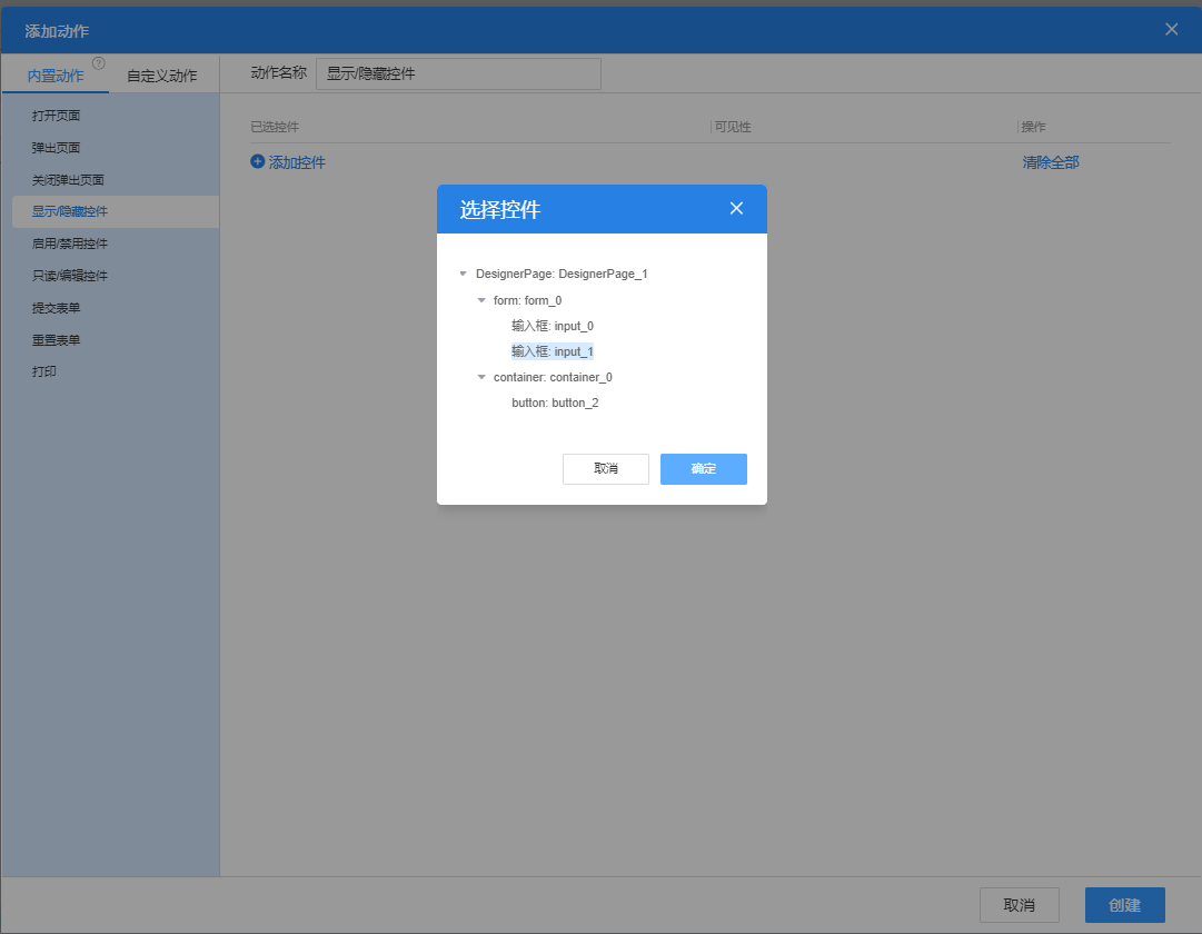 14、添加事件页面右侧有很多内置动作,可以直接选择进行添加