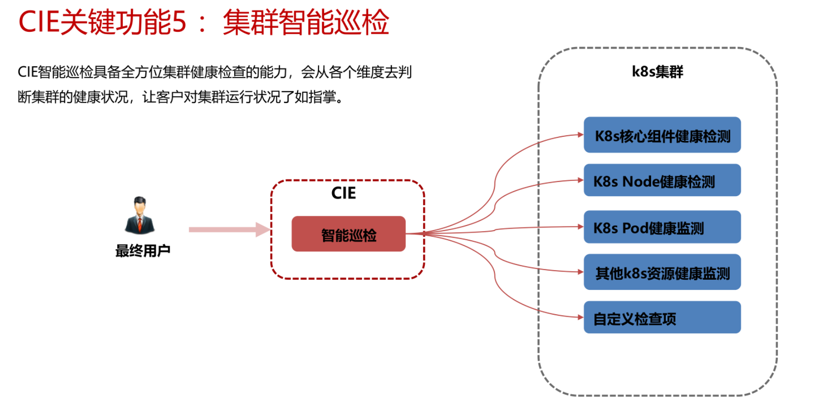 CIE智能巡检具备全方位集群健康检查的能力,会从各个维度去判断集群的健康状况,让客户对集群运行状况了如指掌。