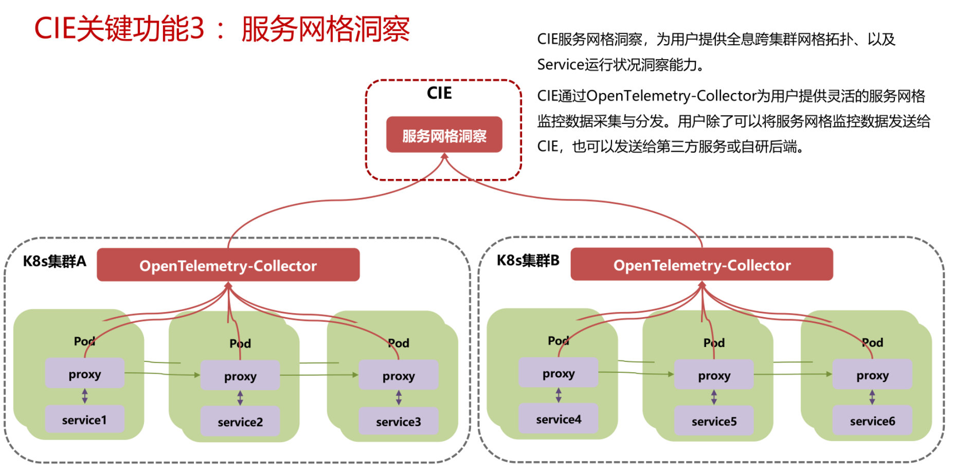 CIE服务网格洞察,为用户提供全息跨集群网格拓扑、以及Service运行状况洞察能力。