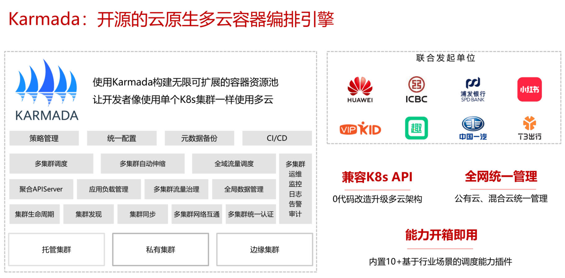 - ·增强分发策略,支持跨集群调度和扩缩容联动