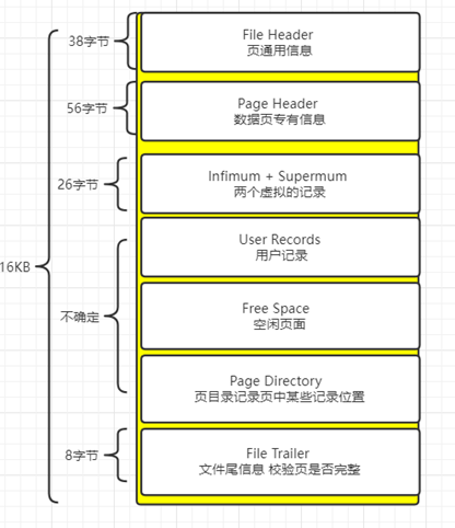 | PAGE_FREE | 2字节 | 已经删除的记录通过next_record组成一个单向链表, 其中所占用存储空间可以重用, page_free表示该链表头结点在页面中偏移量 |
