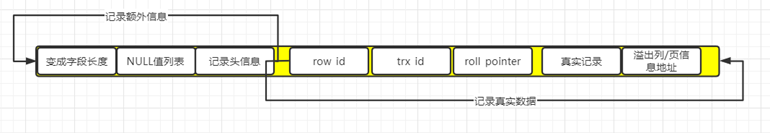 - Next record 当前记录到下一条记录的真实距离(理解为偏移量/指针 正数代表在下一条记录后面,负数代表前面, -111代表向前找111个字节)