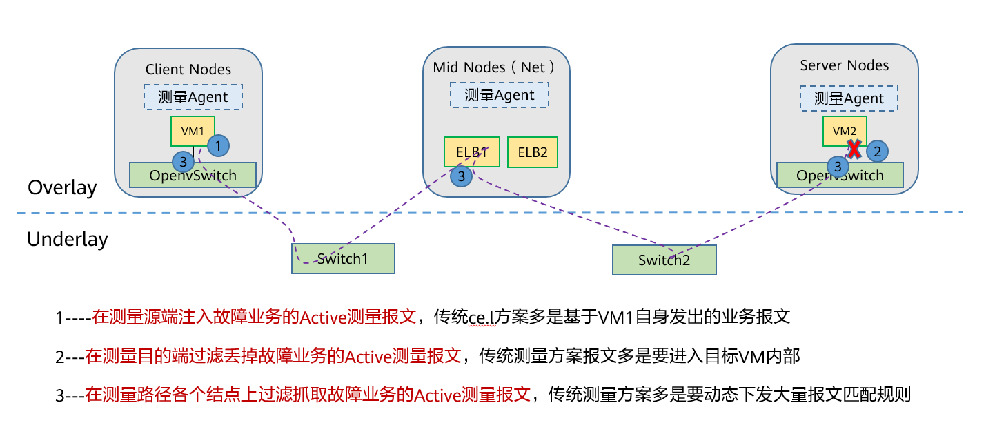 - 高精准性:测量系统基于故障业务流报文/L2/L3/L4头等信息结合测量标识构建Active的测量报文,从而实现精确的测量;