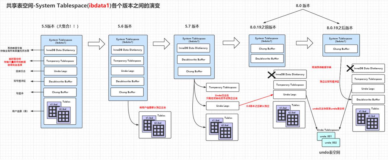 ## ibdata1共享表空间在各个版本的变化