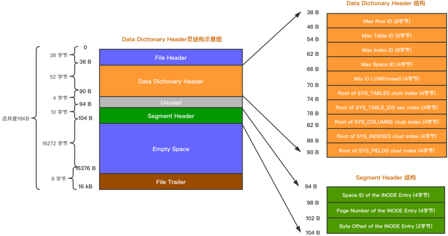 这个页面就是页号为7的页面,类型为 SYS,记录了 Data Dictionary Header,也就是数据字典的头部信息