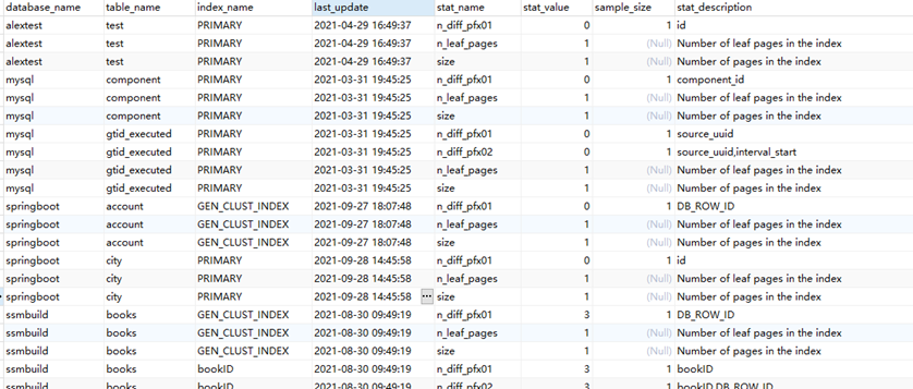 innodb_index_stats 存储索引的统计数据