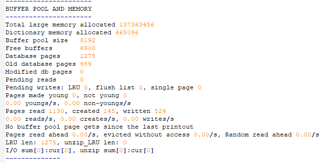 SHOW ENGINE INNODB STATUS语句来查看关于InnoDB存储引擎运行过程中的一些状态信息,其中就包括Buffer Pool的一些信息