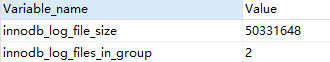 show variables like '%innodb_log_file%';