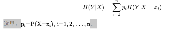 条件熵H(Y|X)表示在已知随机变量X的条件下随机变量Y的不确定性。随机变量X给定的条件下随机变量Y的条件熵H(Y|X)定义为X给定条件下Y的条件概率分布的熵对X的数学期望