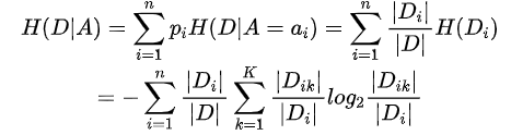 (2)计算特征A对数据集D的经验条件熵H(D|A)