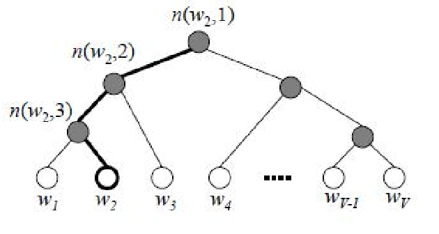 第一种方法是在 2005 年由 Bengio等人提出的解决输出层 softmax 问题的层次 softmax 方法(Hierarchical softmax)。Bengio 等受数据结构哈夫曼树(Huffman