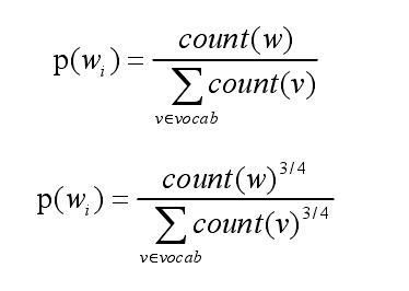 高被选择到的概率应该越大,如公式 2-4 所示。在源码中,Mikolov 将公式进行修改,如下所示。