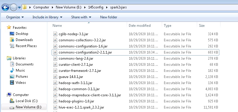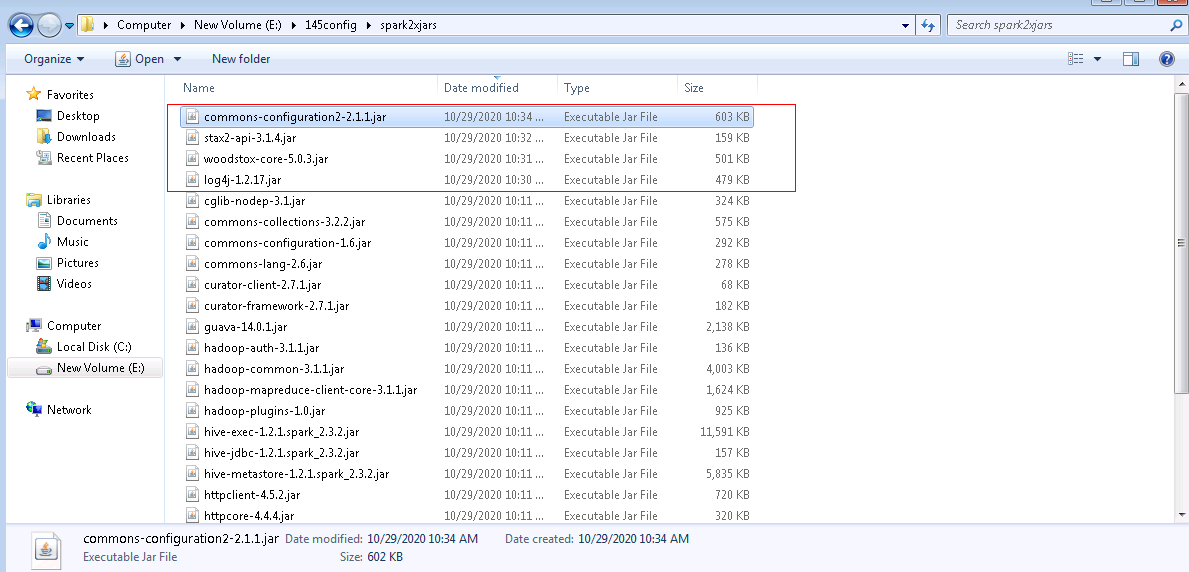 /opt/145_651hdclient/hadoopclient/Spark2x/spark/jars,分别找到如下4个jar包,拷贝到windows本地目录,比如E:\145config\spark2xjarslog4j-1.2.17.jar woodstox-core-5.0.3.jar stax2-api-3.1.4.jar commons-configuration2-2.1.1.jar