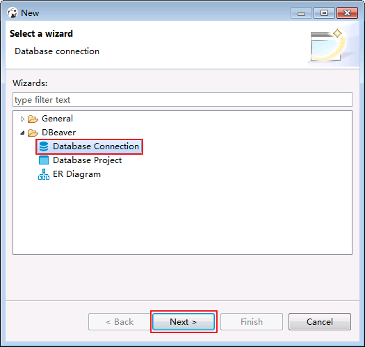 File->New->Database Connection.点击 Next.