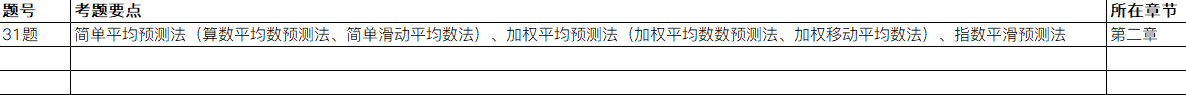 还有一句话要说:运筹学,自考卷,第31题,一般考察 滑动平均值预测、加权平均数预测、指数平滑预测法、加权滑动平均数、简单滑动预测法,说白了,就是第二章重点部分。
