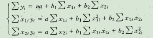 运用最小二乘法,可求得求解回归参数a、b~1~、b~2~的公式