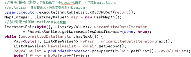 Map读取csv文件中的每一行数据,在conf中获取数据表名。然后根据表名,和数据构造一个upsert 语句,生成执行逻辑,最后生成每一个mutation对象。一行数据可以构造多个mutation对象,因为如果索引表不是disable的话,会生成写索引表的mutation对象。如果索引表是disable状态,就不会构造插入索引表的mutation对象。