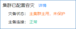 - 容灾集群配置完成后,在“主备集群容灾”页面即可查看当前的灾备状态。