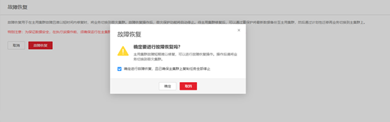 - 勾选确认复选框,等待故障恢复完成。