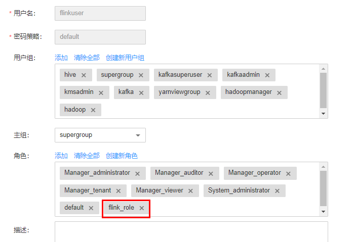 通过Flink WebUI跳转到FlinkServer界面时需要用户登录,该用户需要具有Flink服务的相关角色权限。