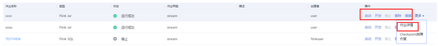 用户可以通过FlinkServer提交、停止、删除、编辑作业,当作业运行后可以通过作业详情跳转到Flink原生界面,查看作业的相关详细信息。