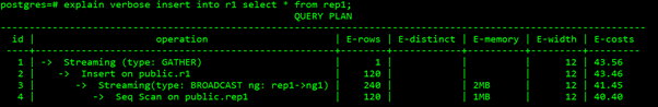 如果insert的目标表和select的源表都是复制表,且select中的表属于复制表NodeGroup,而目标表属于逻辑集群,而基线版本的计划需要优化,基线版本计划如下: