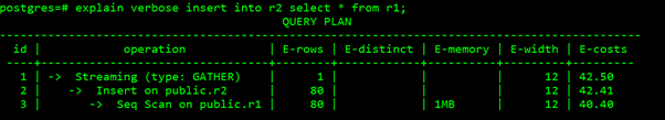 如果insert的目标表和select的源表分布类型不同,比如目标表是哈希表而select表是复制表(或目标表是复制表,select表是哈希表),则不管是否属于同一NodeGroup,都需要Stream算子。这针对复制表NodeGroup也是相同的,不需要特别处理。