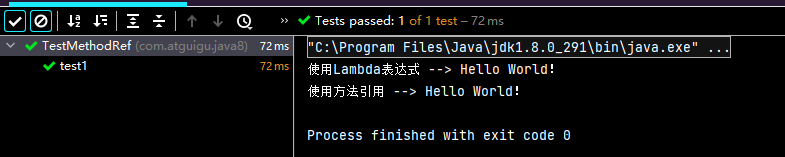 当要传递给Lambda体的操作,已经有实现的方法时可以使用方法引用!(注:实现抽象方法的参数列表, 必须与方法引用方法的参数列表保持一致! )