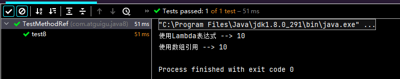 注意:当需要引用方法的第一个参数是调用对象,并且第二个参数是需要引用方法的第二个参数(或无参数)时可以使用:ClassName::methodName 方式进行调用。