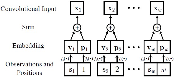 在数据输入阶段,我们首先对原始滑动窗口数据进行特征嵌入,包含位置与观测嵌入两种方法,具体实现如下图所示。