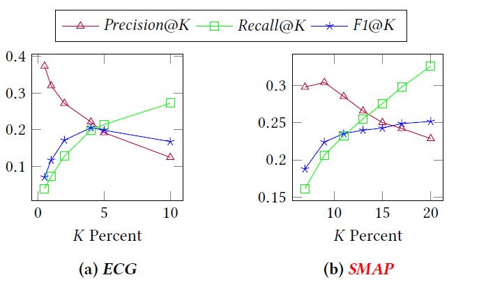 做了敏感度分析,发现在ECG数据上,K选5效果最好,而在SMAP数据上,K选12效果最优。