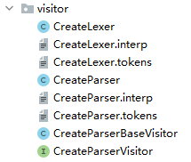 CreateParserBaseVisitor 类继承抽象类 AbstractParseTreeVisitor ,是接口类 CreateParserVisitor 的具体实现。如下代码片段,根节点类型stat及其每个派生类类型均有对应的visit方法。