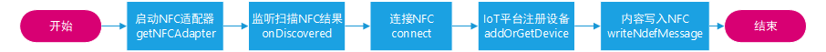 1、通过小程序能够添加产品和注册设备,注册设备的同时产生的DeviceID和Secret,加上Wifi的账号密码,通过NFC功能,小程序调用手机NFC传递给开发板的NFC里面。