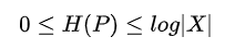 其中,|X|是X的取值个数,当且仅当X的分布是均匀分布时右边的等号成立。这就是说,当X服从均匀分布时,熵最大。