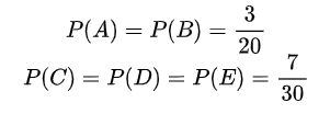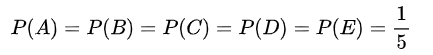 那么在缺少其他信息的情况下,可以认为A与B的概率是相等的,C/D/E的概率是相等的。那么