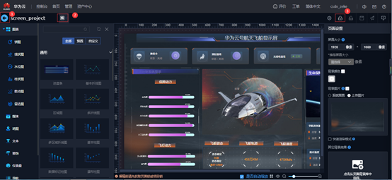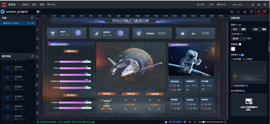 这次我们就使用业务大屏功能开发一个飞船控制台,图片的资源文件华为云已经为我们提供了,也可以自己去找一些素材进行个性化开发。