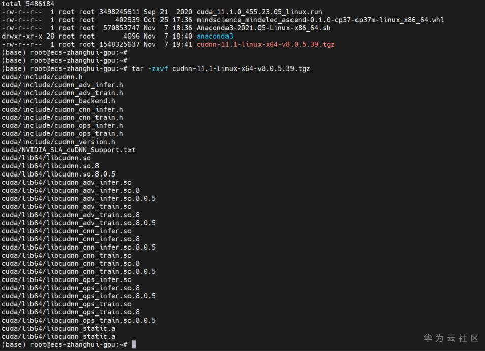 tar -zxvf cudnn-11.1-linux-x64-v8.0.5.39.tgz