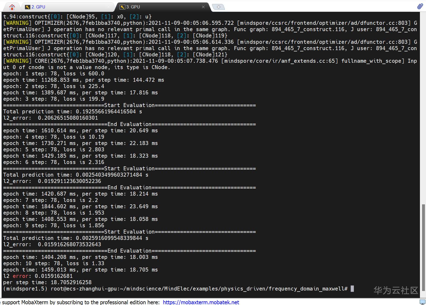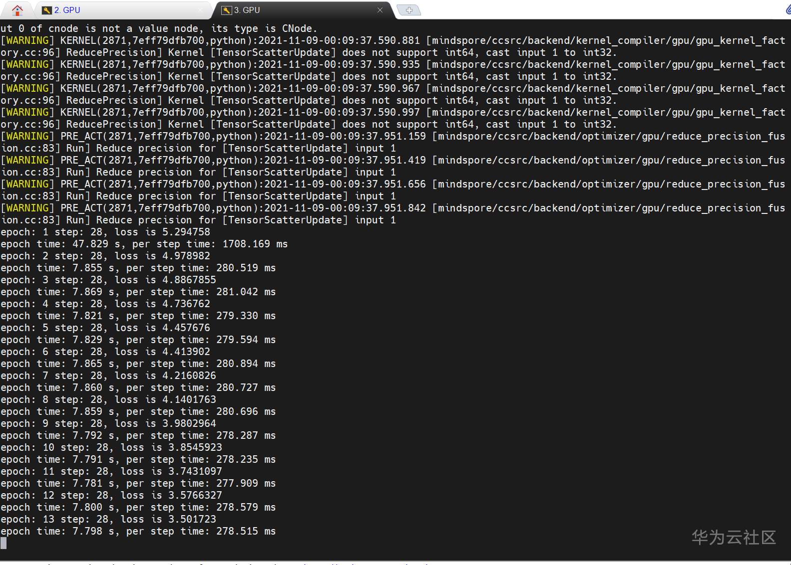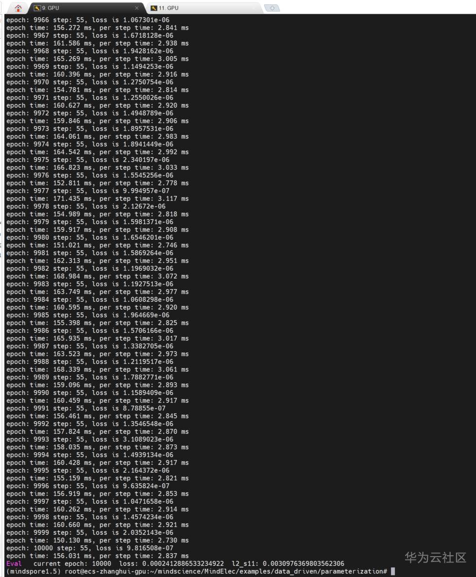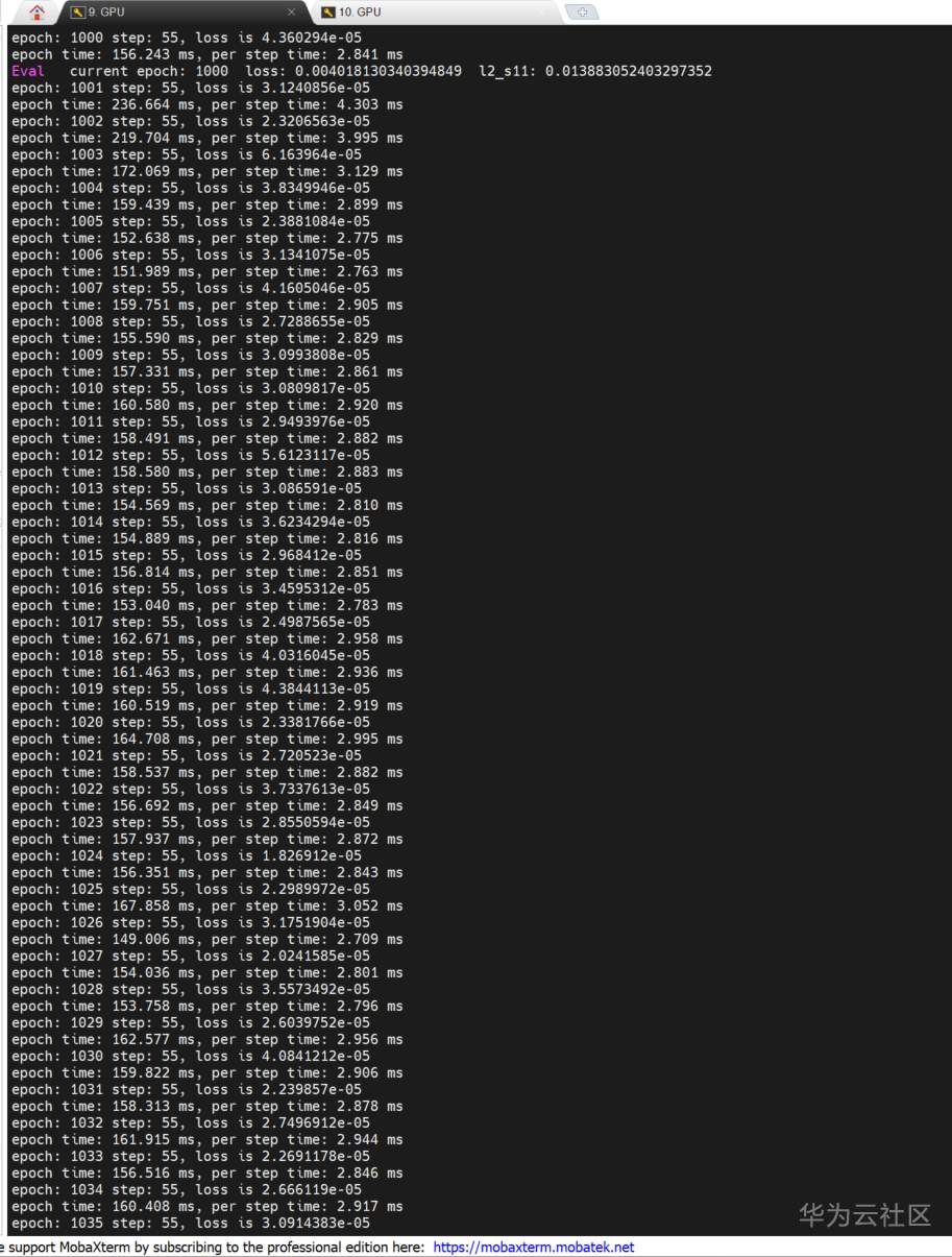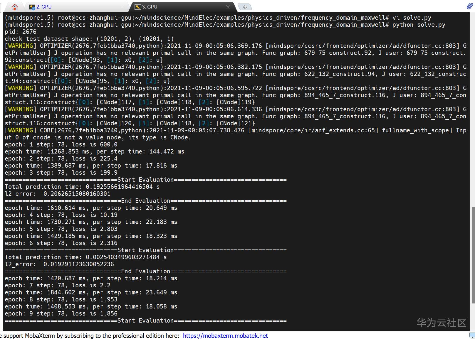 以下试验均需将相关代码中的Ascend改为GPU后再进行验证,以后不再赘述。
