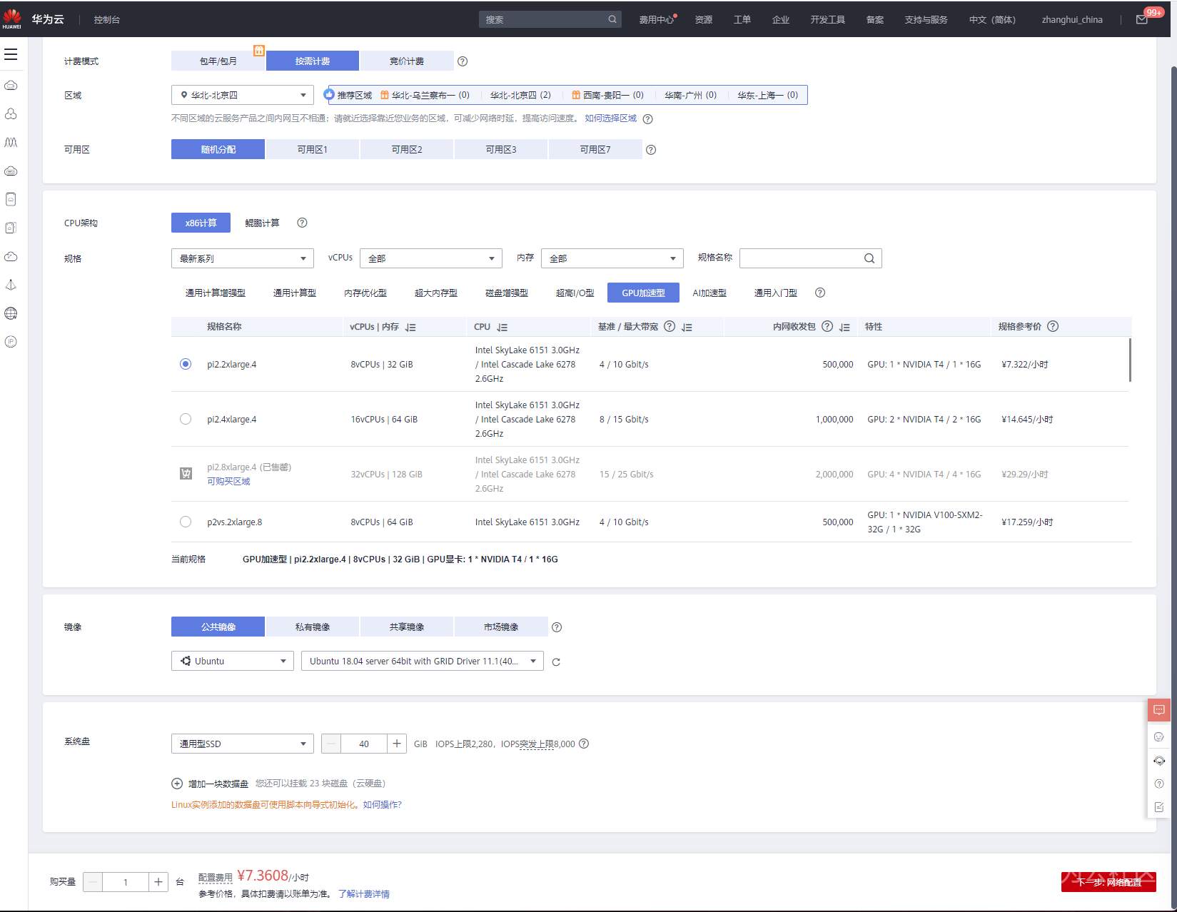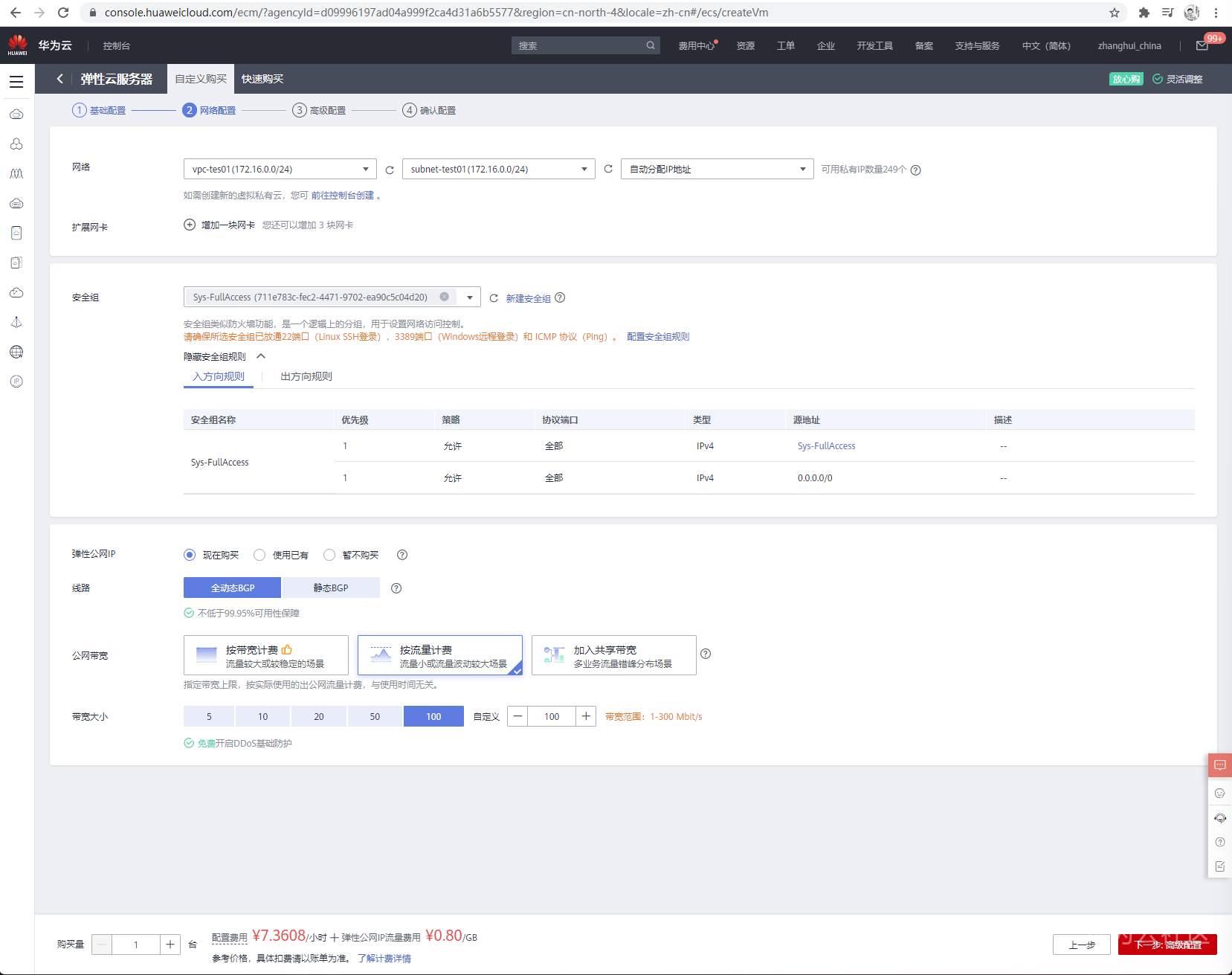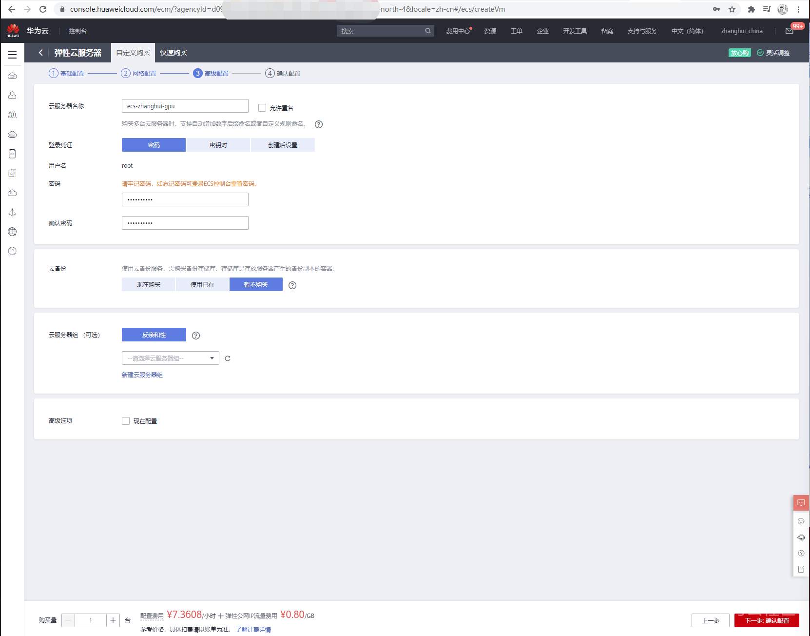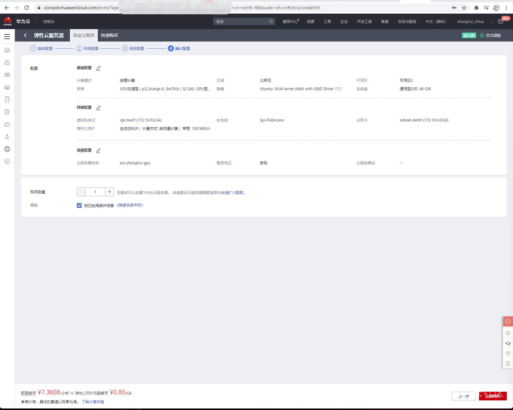 到华为云的控制台-》ECS,切换到北京四,按照下图所示购买: