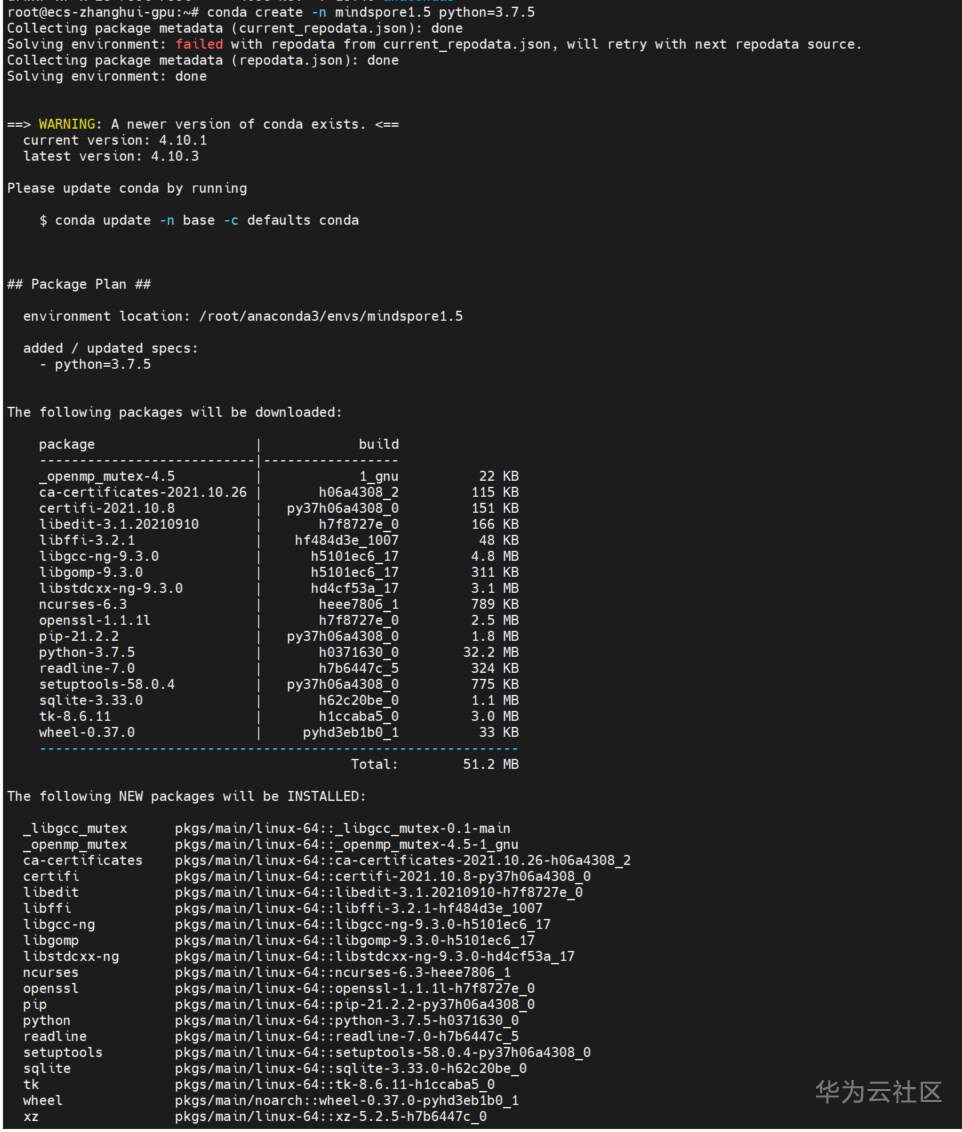 由于MindSpore传统上都是使用Python 3.7.5环境(当然后面也支持了Python 3.9),所以先装conda环境: